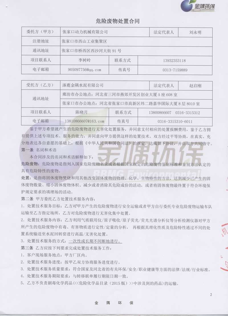 張家口動(dòng)力機(jī)械有限公司危險(xiǎn)廢物處置合同公示